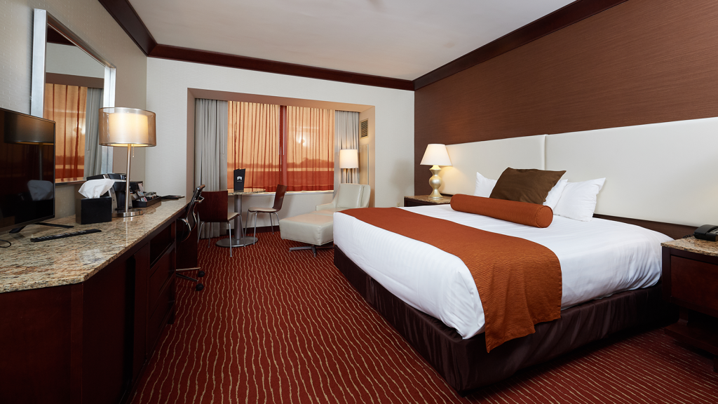 Modern comfort and elegance combine to create a sophisticated environment. This one-of-a-kind room features a luxurious King Bed, convenient workspace and casual lounge area. The King Studio will have you keeping your cool in the hottest way possible.