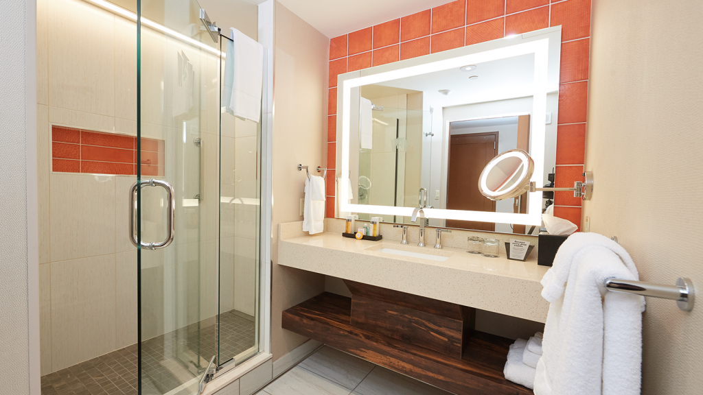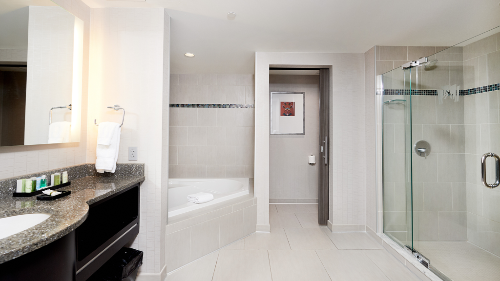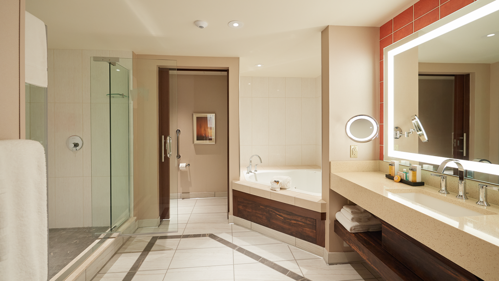 Need a little more breathing room? Make the most of any getaway in these fabulously spacious suites with a separate sitting area, king-sized bed with luxurious linens and sleek modern furnishings. Both styles feature sizeable bathrooms, with an expansive shower and indulgent whirlpool tub.
