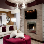 Step into luxury with this upgraded Tower II suite. The clean, contemporary design includes a water vapor light feature (giving the illusion of fire), a lavish bathroom, and opulent seating area. The Aqua Fire Suite will have everyone in your party feeling like a VIP.