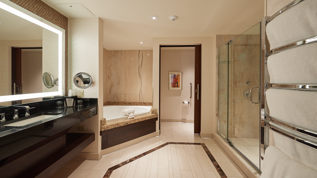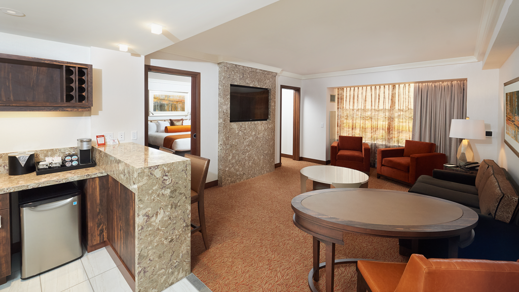 In this suite it goes without saying, you are a rock star. With its modern living room, and granite wet bar, to the spectacular bathroom that’s the size of a small country, you may find yourself demanding only certain colors of M&M’s and acquiring an entourage. And why shouldn’t you?