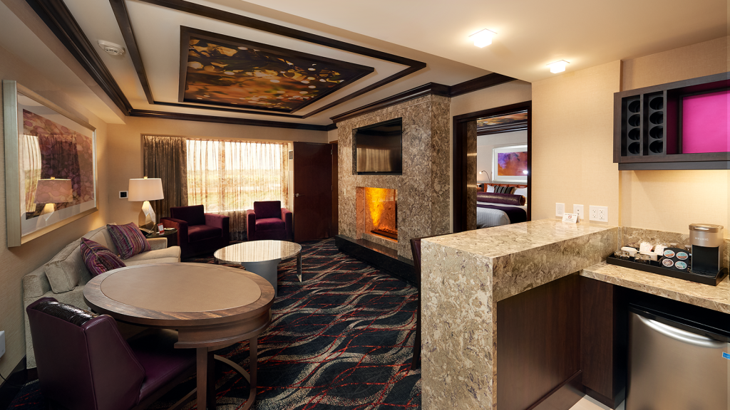 This suite has all the amenities and space of The Deluxe with the added romantic touch of a fireplace. This is the one you’ll want if getting your Vegas on involves a few sparks. And seriously, shouldn’t every romantic getaway involve a few sparks?